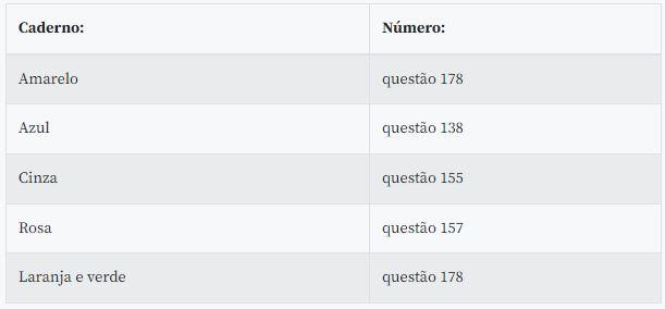 O número correspondente à questão anulada varia em função do tipo de caderno, da seguinte forma: